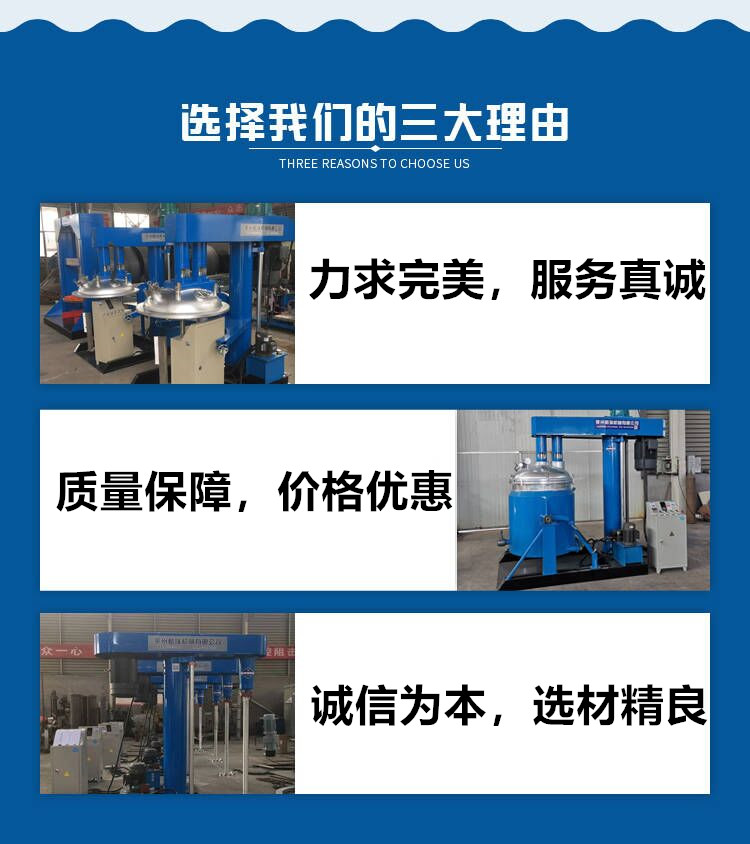 液压和机械两种升降形式,升降旋转自如,,适应各种位置;普通及防爆配置,操作维护简单;生产连续性好,对物料可进行快速分散和溶解、分散效果好、生产效率高、运转平稳、安装简便。针对不同物料粘度及处理量有不同的功率及型号。
