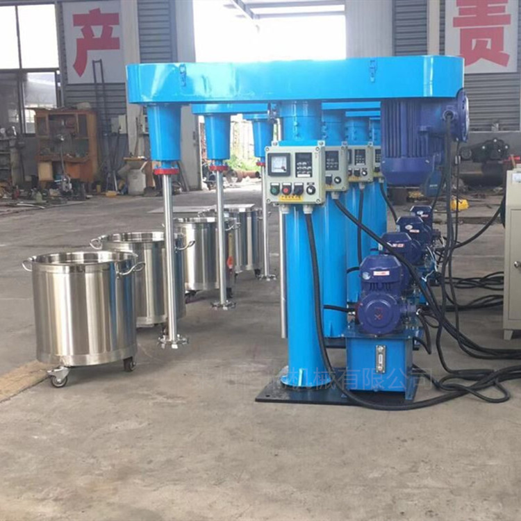 本机为防爆分散机,防爆分散机主要用于油漆、油墨、涂料、色浆、地坪漆、马路划线漆、聚氨酯漆、醇酸瓷漆、调合漆等溶剂型易燃易爆化工产品的生产。对其进行粉碎、分散、乳化、混合,通过分散盘上下剧齿的高速运转的***搅拌设备,对物料进行高速的强烈的剪切、撞击、粉碎、分散,达到迅速混合、溶解、分散、细化的功能。防爆分散机分机械升降和液压升降两种,由机械系统、液压系统、主传动、搅拌系统、导向机构、电控箱五部分组成,各部分结构紧凑、合理。分散盘型式:平盘锯齿式、浆式、其它形式。分散机的分散盘下方呈层流状态,不同流速的浆料层互相扩散,起到分散作用。高速分散机具有液压升降、360度回转、无级调速等多种功能。可同时配置2-4只容器,液压升降行程1000-1400㎜(可定做)、360度回转功能能更好的满足一机多用,能够在很短的时间内从一个缸变换到另一个缸进行作业,分散机大大的提高了工作效率,同时也降低了人工劳动强度。
