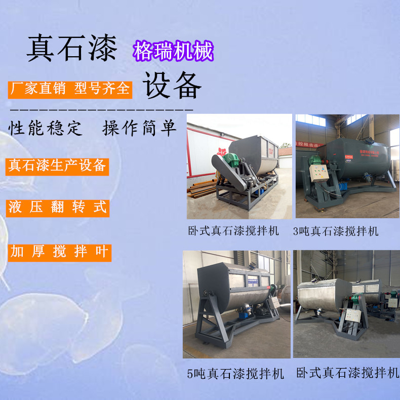 真石漆混合机说明: 也可用于腻子膏的制作。是一种生产真石漆涂料的设备。真石漆是一种很稠厚的厚质建筑涂料,是用合成树脂乳液与不同级配的彩砂粒子及多种助剂配制而成的,它的生产过程与一般建筑涂料的生产过程是不相同的,不需要通过高速搅拌或研磨等工序,主要是物料搅拌的过程,因此不能使用普通涂料的生产设备,应当使用适合于搅拌稠厚料浆的搅拌机进行生产。本公司生产的真石漆搅拌机分卧式和立式两种,客户可根据自己的实际生产场地来决定选择适合的机型。具体可咨询本公司技术人员。
